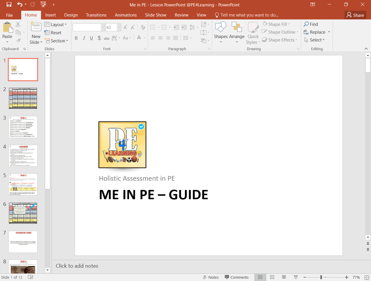 Me in PE Assessment Model from PE4Learning. Embed a holistic model of assessment alongside your current department model using these fully editable templates and guides. The model looks at developing students leadership, knowledge, character and mindset. It is easy to follow and can be used as a teacher, peer and self-assessment tool. The pack contains assessment registers, templates, lesson plans and a ‘How To’ guide. The product is created from scratch using stock shapes in Microsoft PowerPoint and images are commercial free with no link back license attached. Product example is shown in the gallery images above. *Important Note – The digital file can only be downloaded from the PE4Learning servers once per purchase and it is recommended to download the item from a personal computer rather than a tablet or smartphone device.